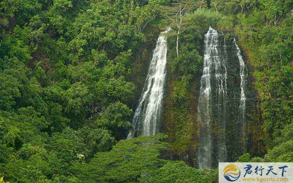 也是可爱岛为数不多的在公路就可观赏的瀑布。沿着580号公路行驶,直至看到位于右手边的Opaekaa Falls观景点,从那里就能俯瞰瀑布的壮丽景色。
