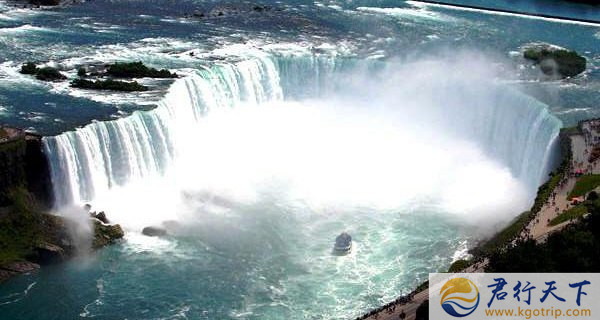 瀑布位于美国和加拿大交界的尼亚加拉河中段,从19世纪中叶开始,就饱受游客的青睐。不管是站在瞭望塔上,坐在船里,还是徒步探险,游客们都能看到壮观的大瀑布奔流而下的水势。