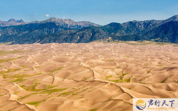 大沙丘国家公园拥有北美洲最高的沙丘,其高度超过230米,由远古时代格兰德河的沉积物在圣路易斯谷推叠而成。沙丘旁边是各种草原、灌木林和湿地,园内还有高山湖泊、6座约4000米高的山峰和古老的森林。