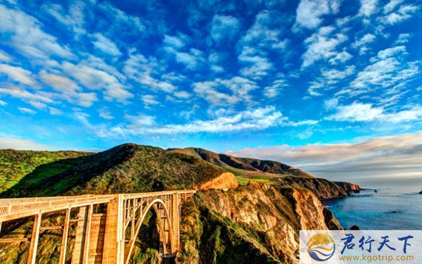加州是个旅游胜地,山高海低,美国旅游景点1号公路上风景优美的地方,实在太多了,你会不胜其烦的在每个景点停车驻足,一侧海阔天空惊涛拍岸,风帆点点碧波万顷,一侧陡峭悬崖群峦迭翠,牧草如茵牛马成群,满足你对美景的所有期待。