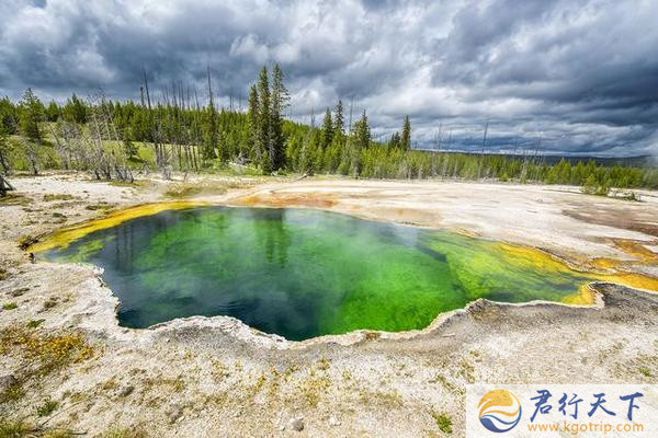 一半冷湖,一半热泉,远处是雪山,眼前是彩池。抬头远望,蓝天雪山白云中,眼前的烟雾缭绕,有种不真实的感觉。这里的绿草和枯树形成鲜明的对比,感受到生命的轮回。这里的蓝色非常的清澈,好像热带海边一样,总给人以错觉,真想跳下去畅游一番。在这里各种美丽得令人心碎的热泉,绝对值得一去。