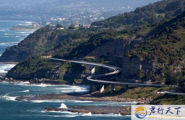 这条如龙如蛇一样的海岸高架公路是蓝色海洋路中最美的一段(海崖大桥),盘旋在澳大利亚新南威尔士州伍伦贡市的海岸线上,当你穿越在这条路上,犹如腾空起舞的感觉,震撼之至!